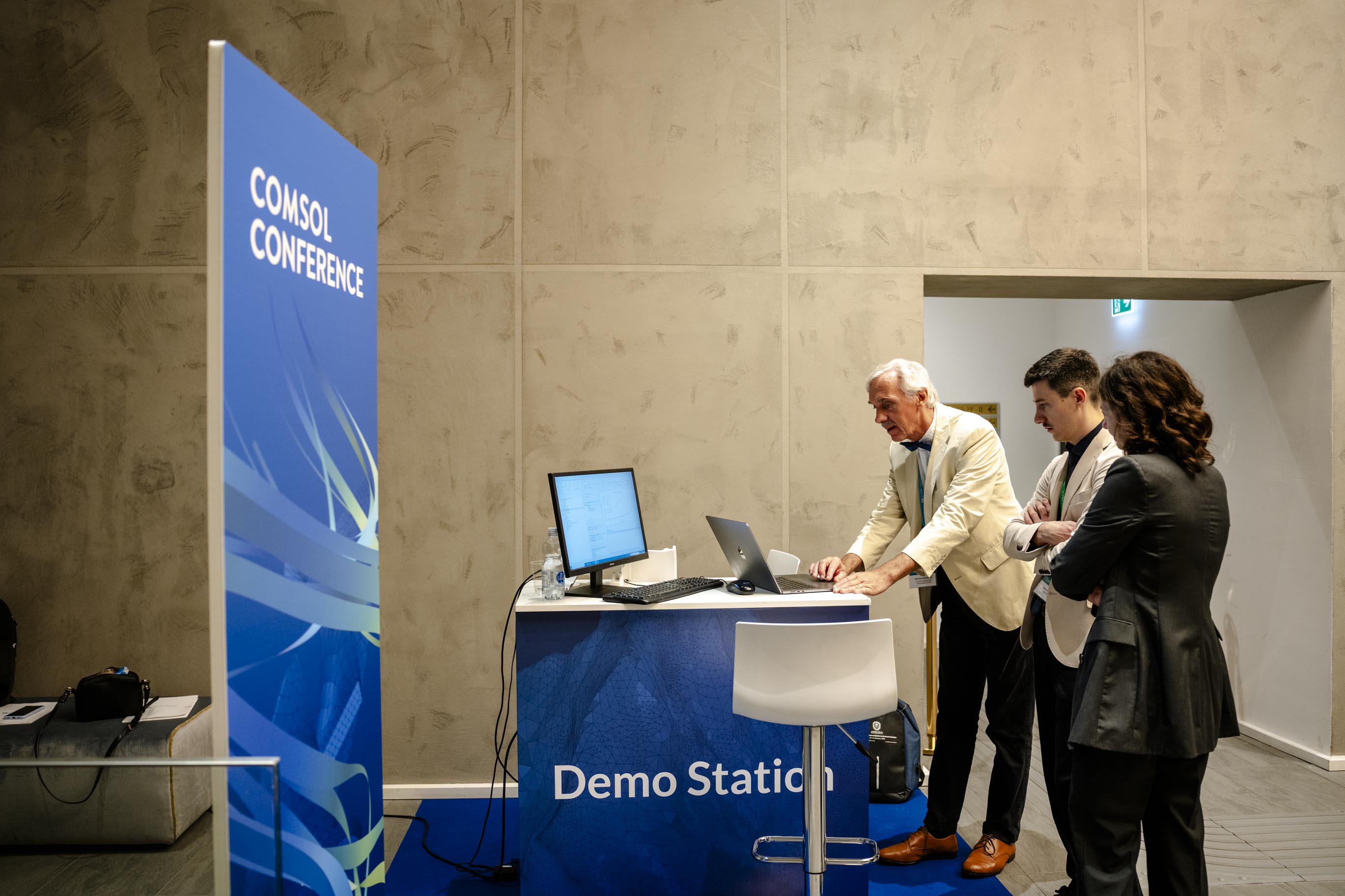 In addition to these talks, the conference included more than 20 minicourses covering in-depth modeling and simulation best practices for different areas of physics as well as demo stations where attendees were able to receive 1-on-1 guidance from our applications engineers. Attendees also saw an exclusive look at the upcoming version of the software, COMSOL Multiphysics® version 6.3, in a keynote talk given by Ruud Börger of COMSOL.